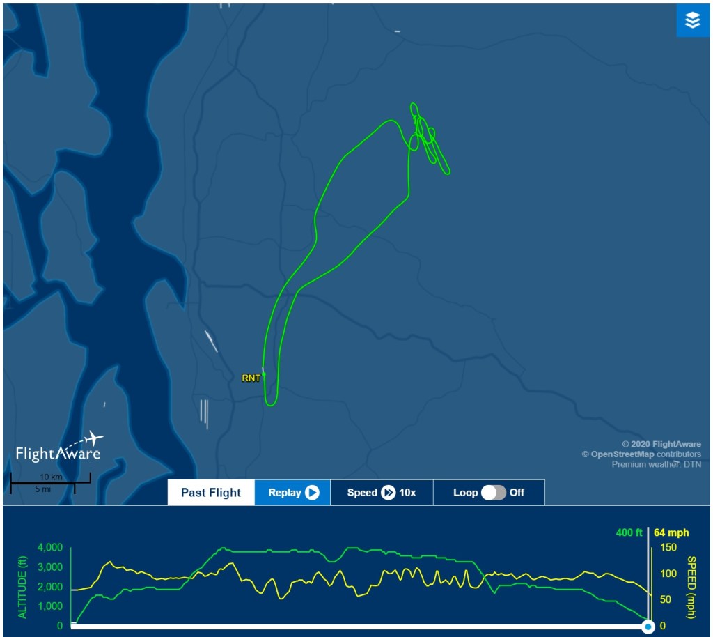この日はBellingham, Skagit, Paine Fieldの3つの空港によってレントンまで戻ってきました。