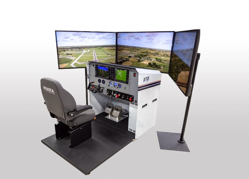今度は本当に不時着の練習です!といってもシミュレーターです。まさか本当に実機で不時着できるわけはなく、C172のシミュレーターで練習してきました。Windowsのソフトで動いてるFrasca RTDというものでした。パネルや操縦桿はほぼ実機に近いもので画面は3面に大型パネルが設置してあります。この会社のサイトで同じようなコンフィグレーションの値段を見ると800万円くらいするようです。